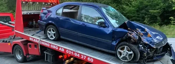 En bärgningsbil hämtar bilen direkt där den står, vilket gör processen enkel även om bilen inte startar.